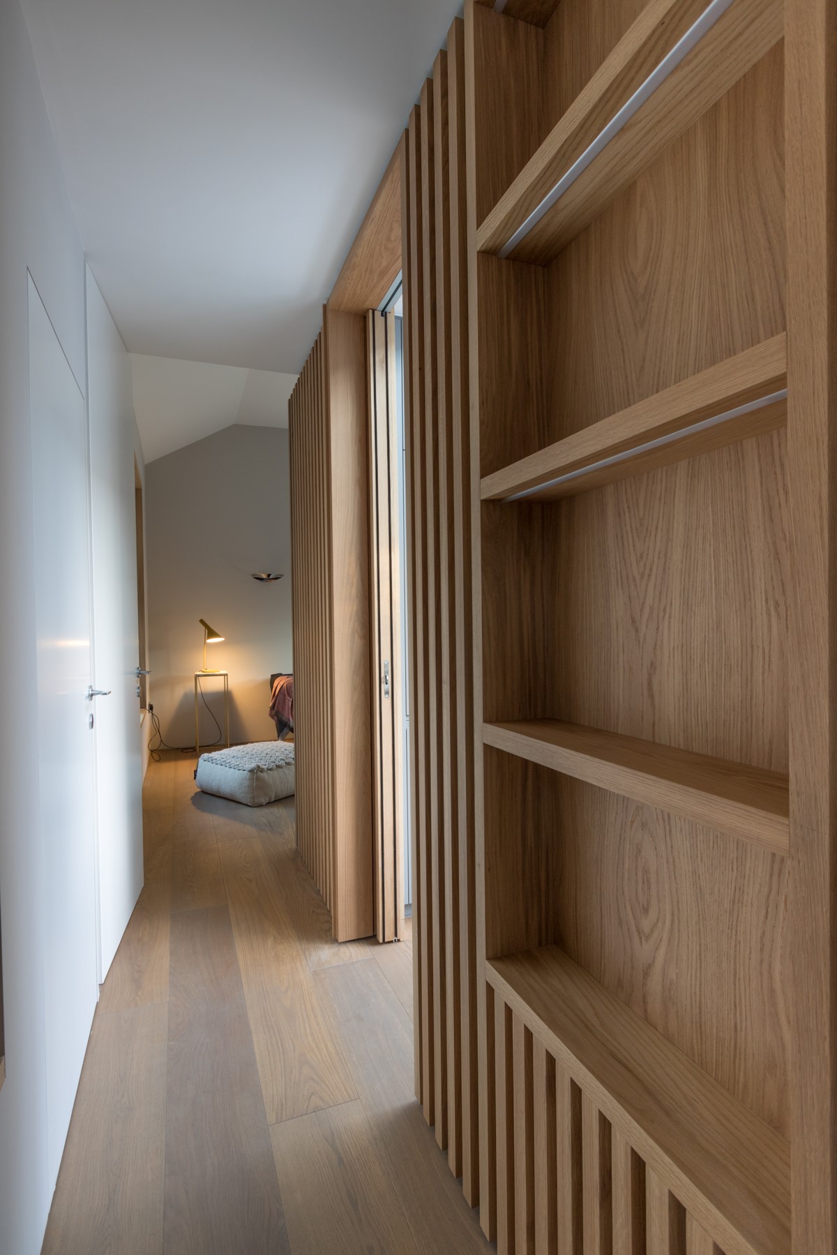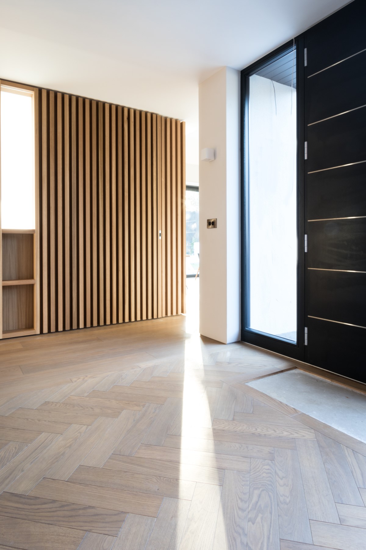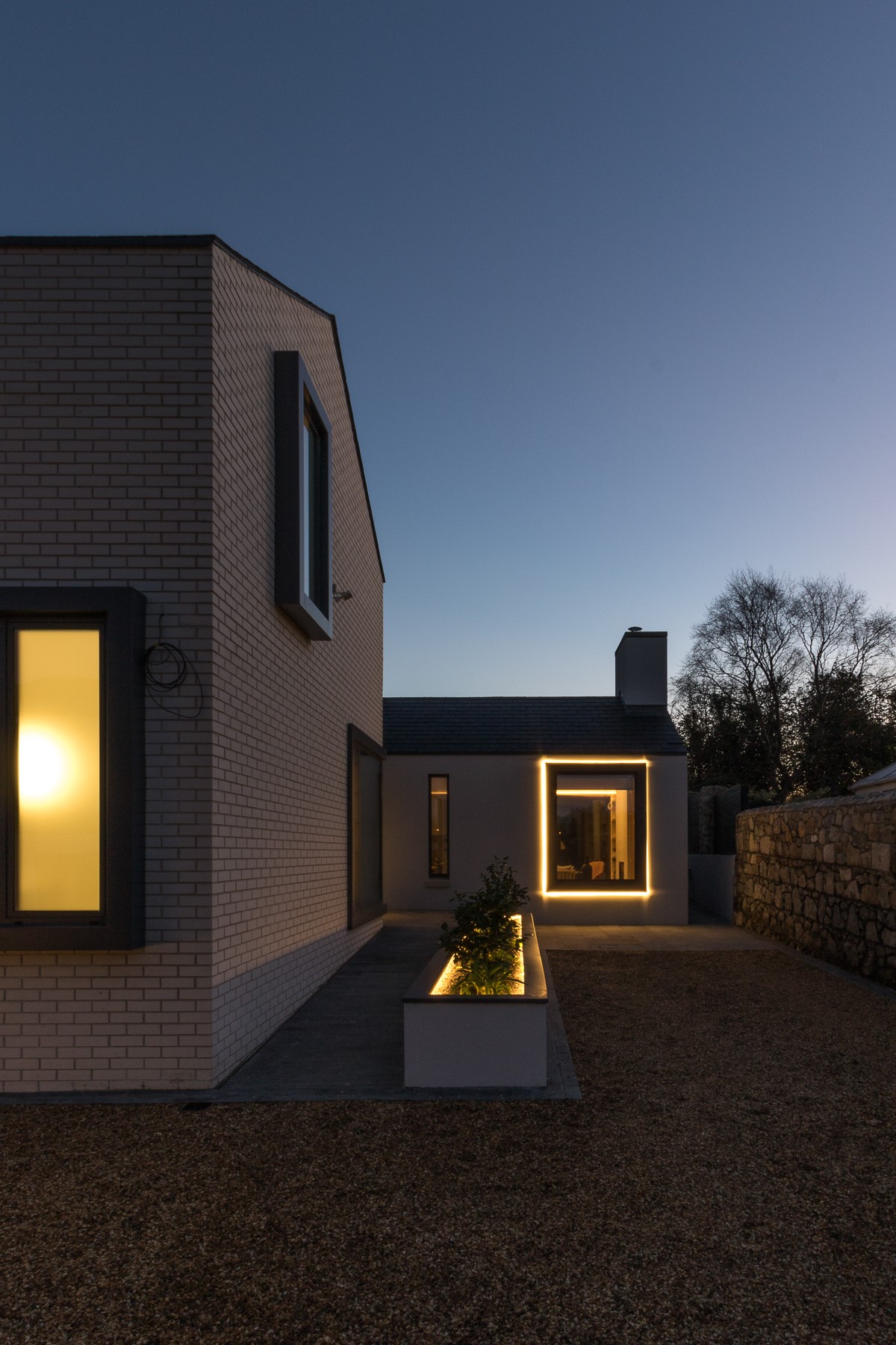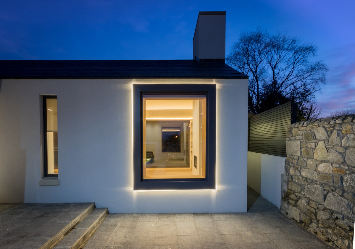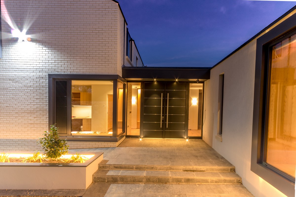 Contemporary rear garden downsizing home designed by Extend Architects to create a good relationship with it’s surroundings whilst providing adequate privacy and capturing as much natural daylight as possible. The materials include natural slate, white brick, oak joinery and expansive glazing by Kokoon.