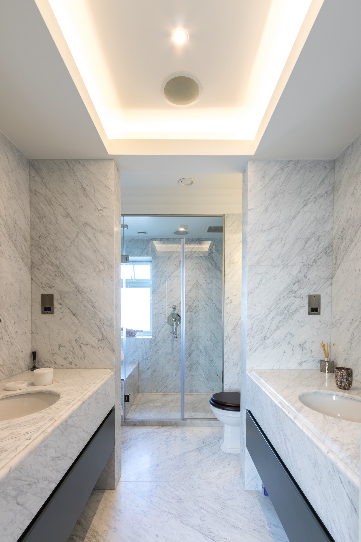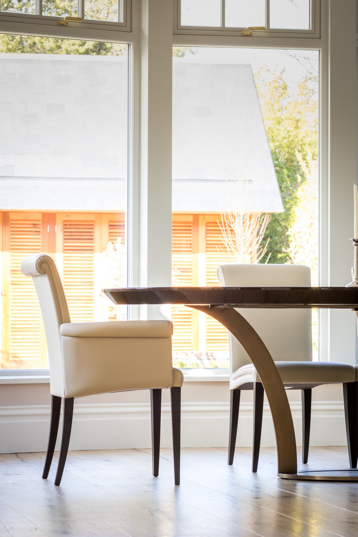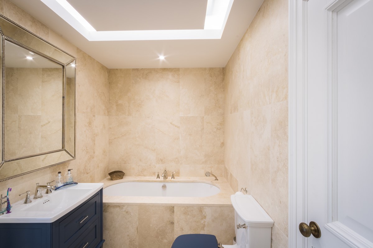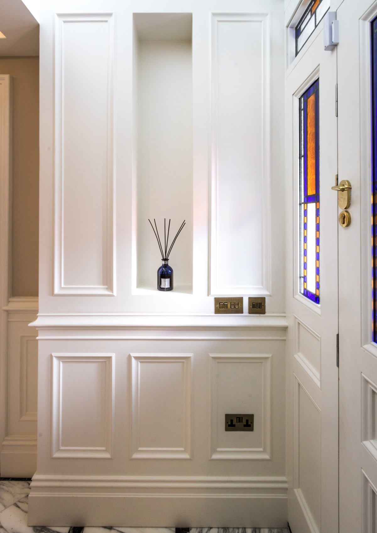 Rear extension to existing house designed by Node Architects with copper roof and windows by Kokoon. Beautiful interiors with natural stone bathrooms and flooded with daylight entrance hall & staircase with timber panels.
