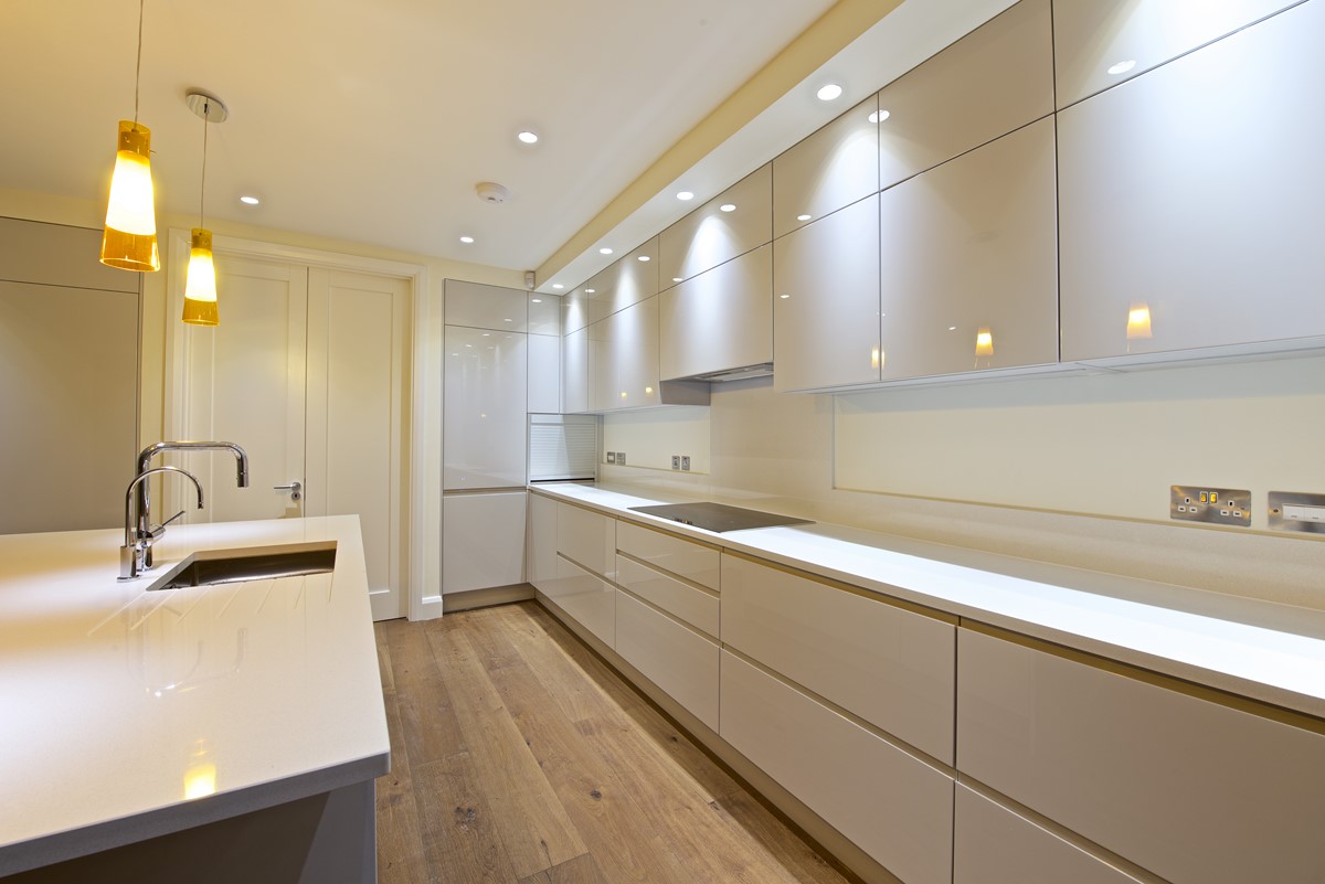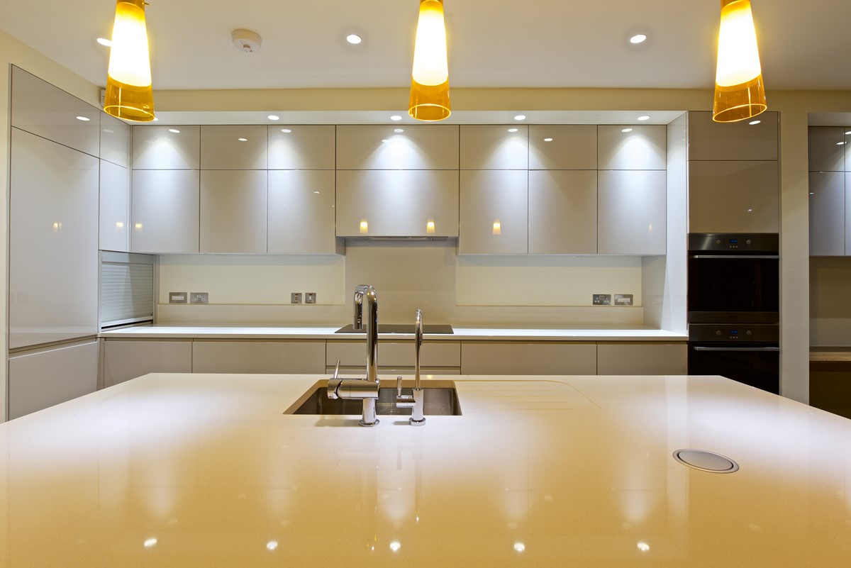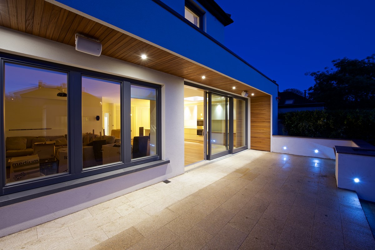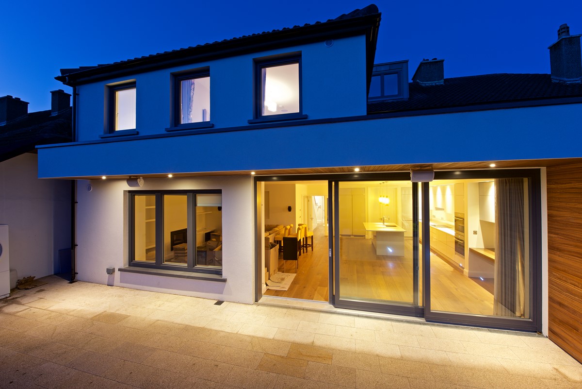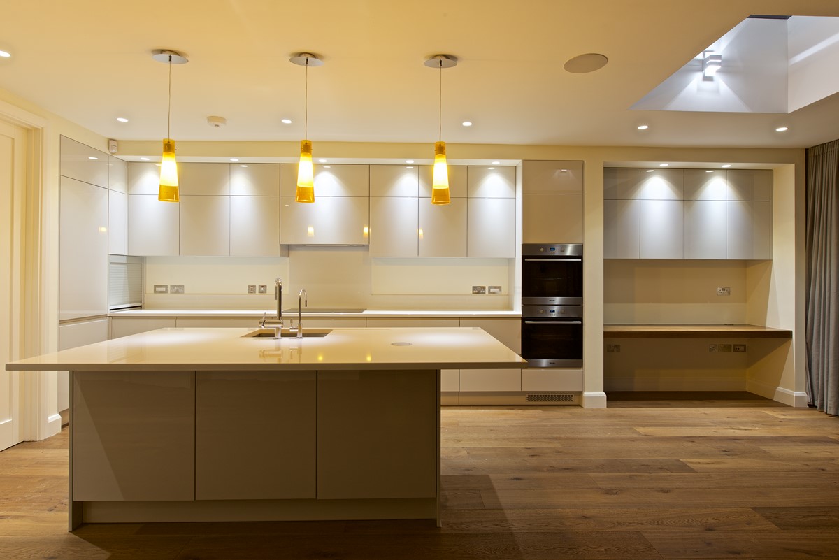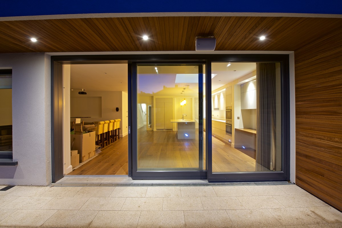 Renovation and rear extension to the existing house designed by Extend Architects. Expansive external sliding doors by Kokoon connect the open plan contemporary kitchen designed and supplied by Agata Design Studio to the external patio and fill the room with natural daylight.