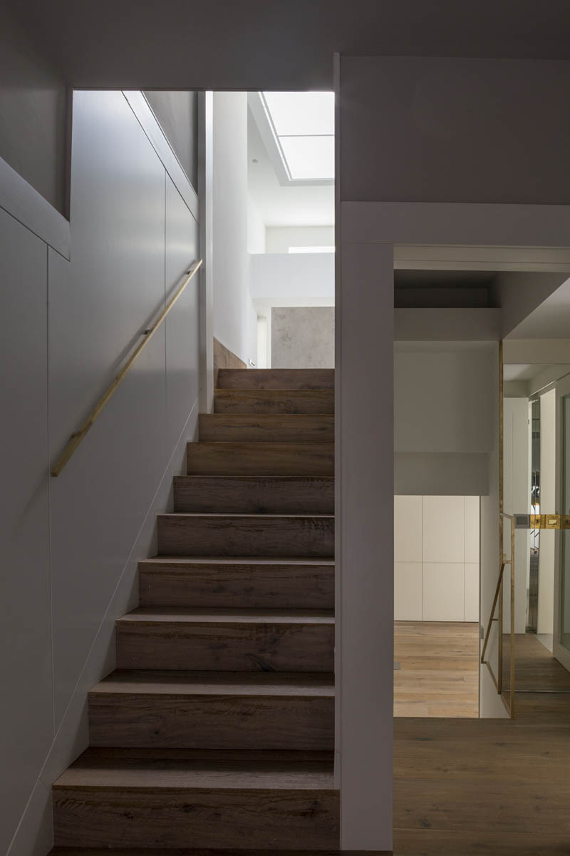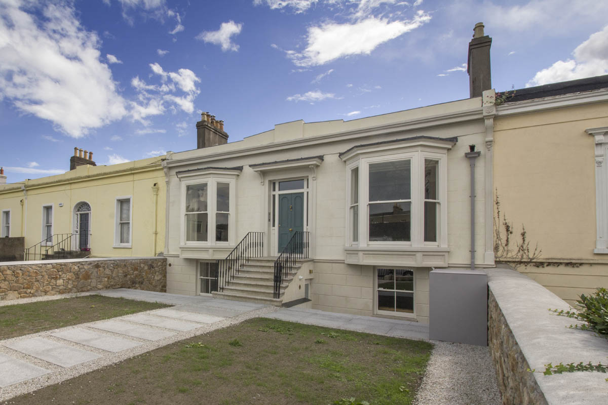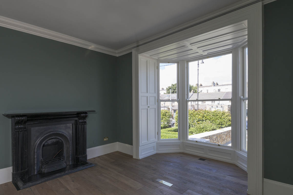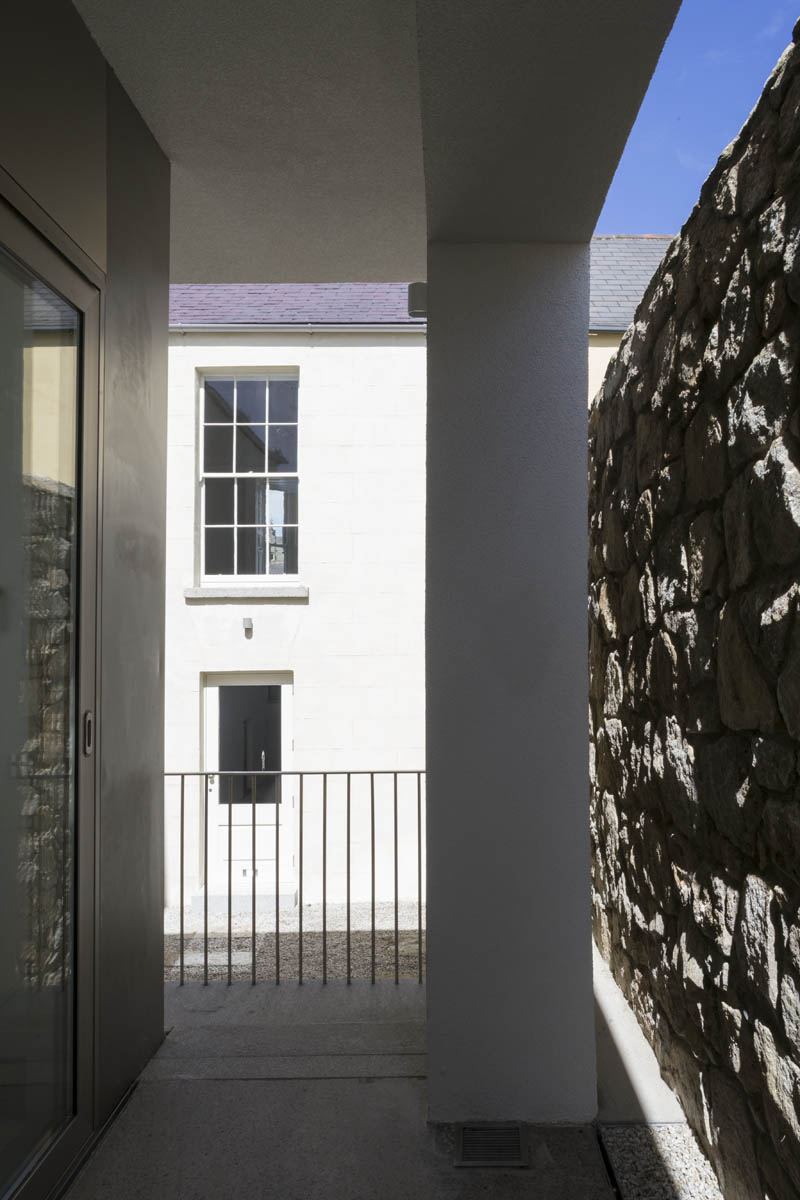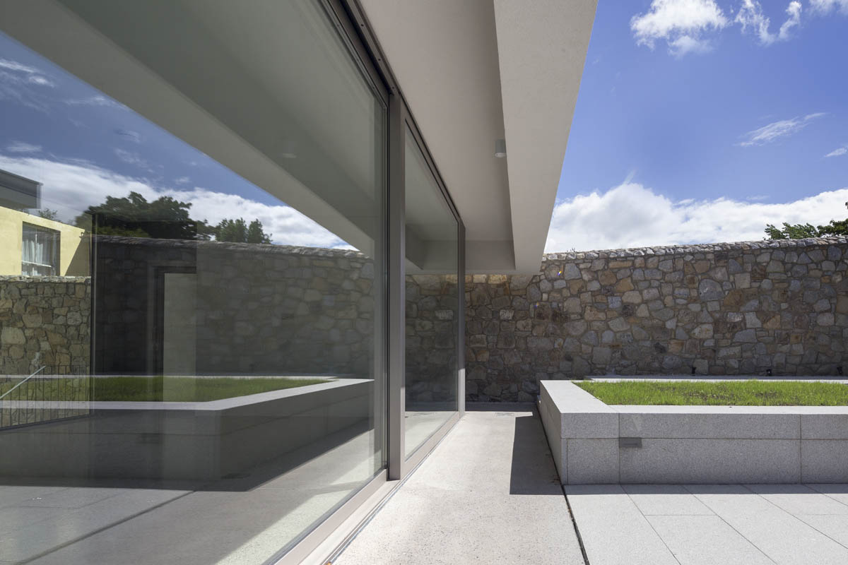 Extensive internal modification and renovation of an existing mid-nineteenth century, two storey, terraced protected house in a Residential Conservation Area including the demolition of the existing return and the construction of a new two storey, split level, addition to the rear, designed by Boyd Cody Architects. The large living space, characterised by a deep overhanging roof, opens onto a paved terrace area. The external walls of the living space are wrapped in satin anodised aluminium and glazed screen supplied by Kokoon.