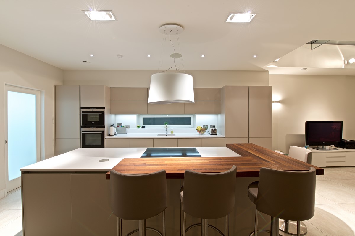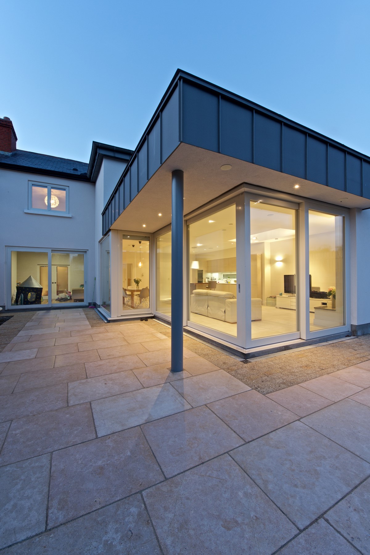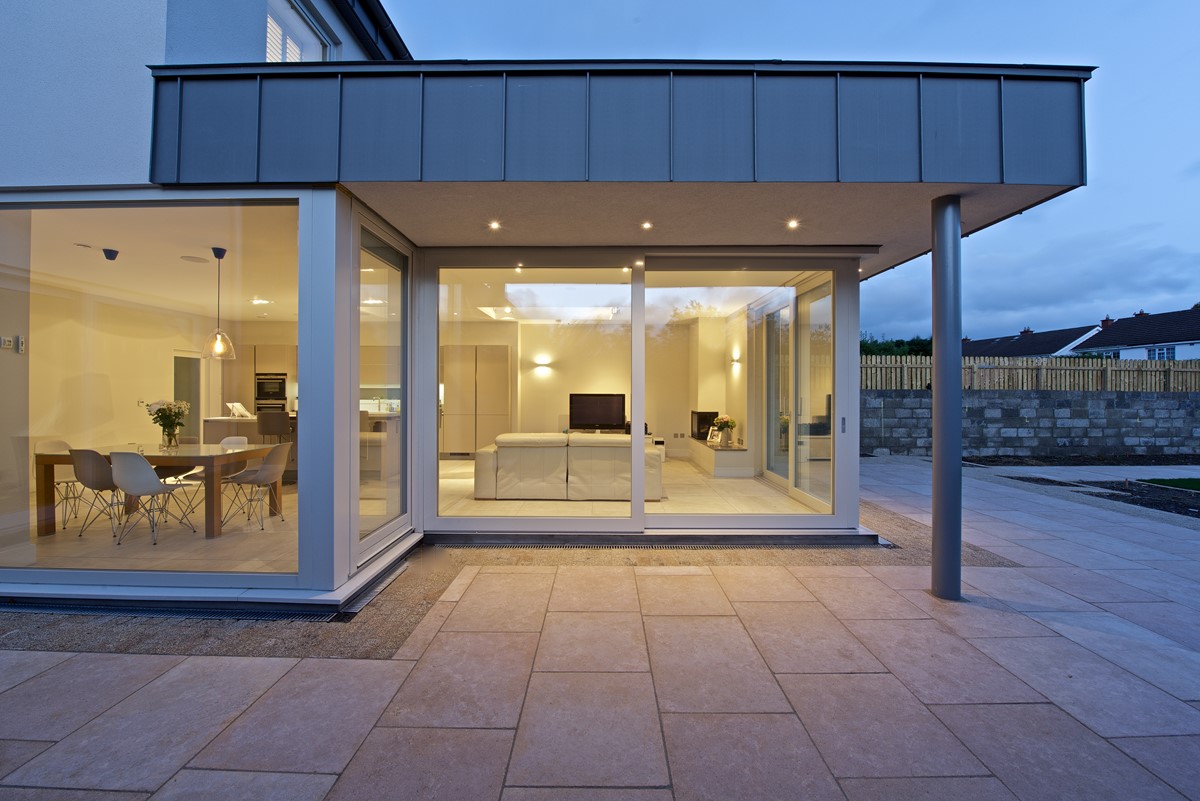 Renovation and extensions to the existing house – both rear and side – designed by CPR Architects. Spacious open plan kitchen with zinc finish and windows supplied by Kokoon.