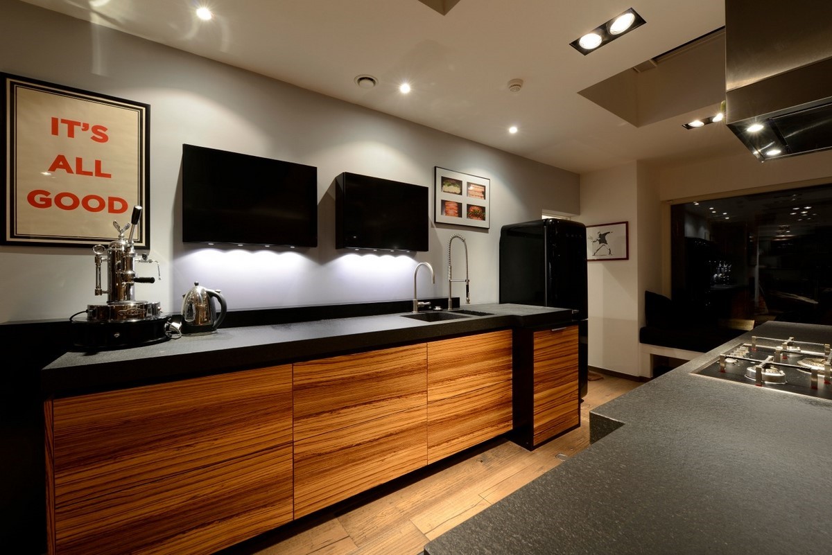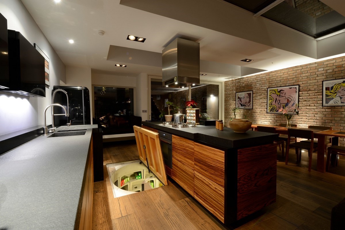 Rear extension and renovation of the existing house, designed by Extend Architects. Very unique internal design with underground wine cellar. Kitchen designed & supplied by Agata Design Studio, opening to the rear garden with large sliding doors & windows, supplied by Kokoon.