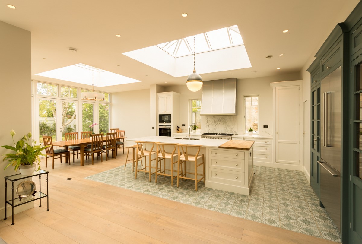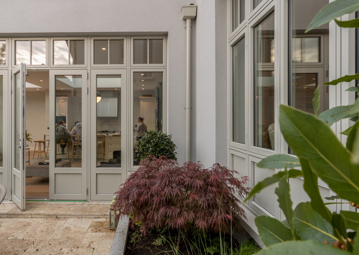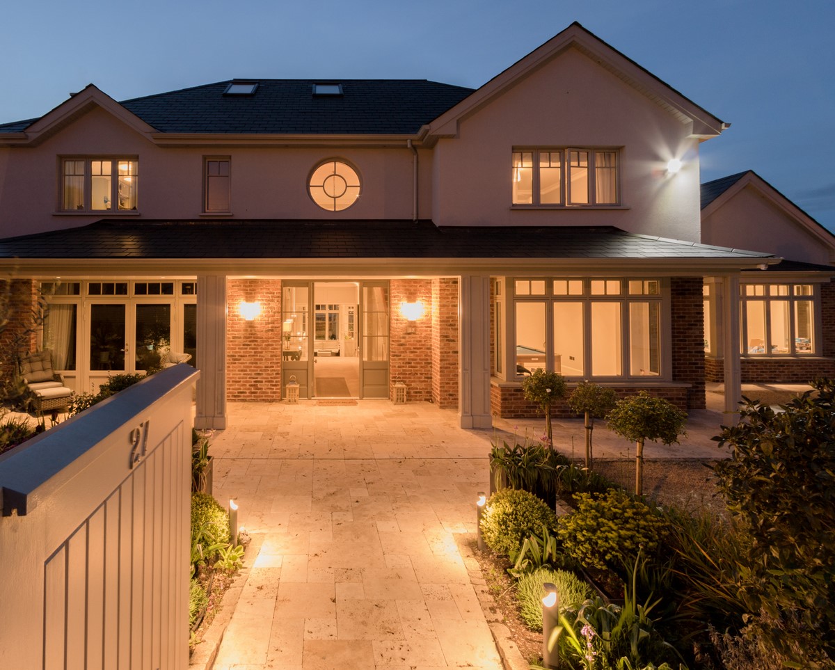 Demolition of existing house and build of new detached house designed by Extend Architects. Contemporary interior design with timber wall panels, hardwood floors and open plan kitchen to the rear. External windows & doors supplied by Kokoon.